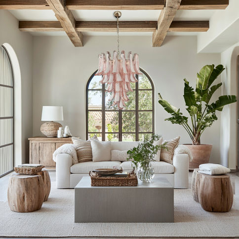 Murano Chandelier in Pink and White Lattimio Glass – 52 GLASS - Made in Italy